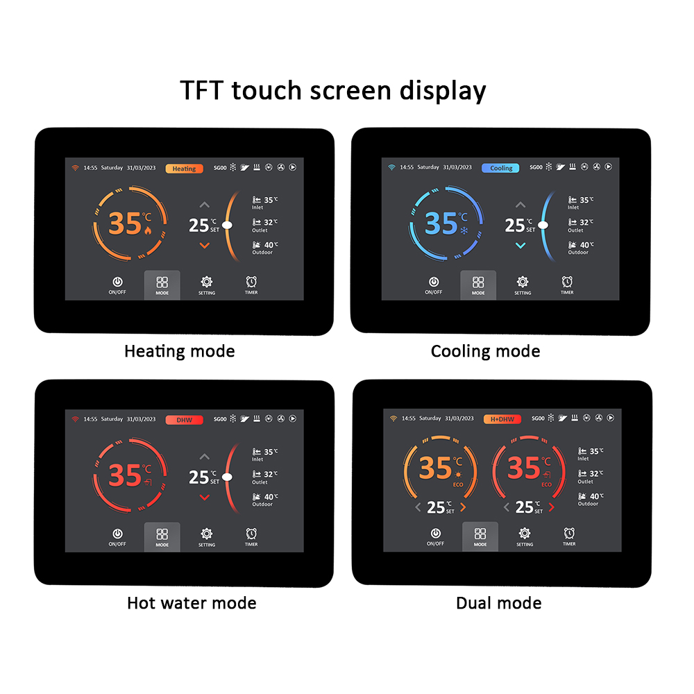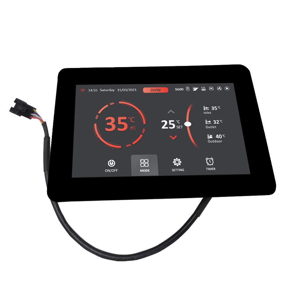 5寸TFT彩屏触摸线控主要适配于工程、泳池类热泵控制器,通过了EMC标准测试,是暖通热泵市场配件倍受青睐,特别适用于做出口的热泵厂家。